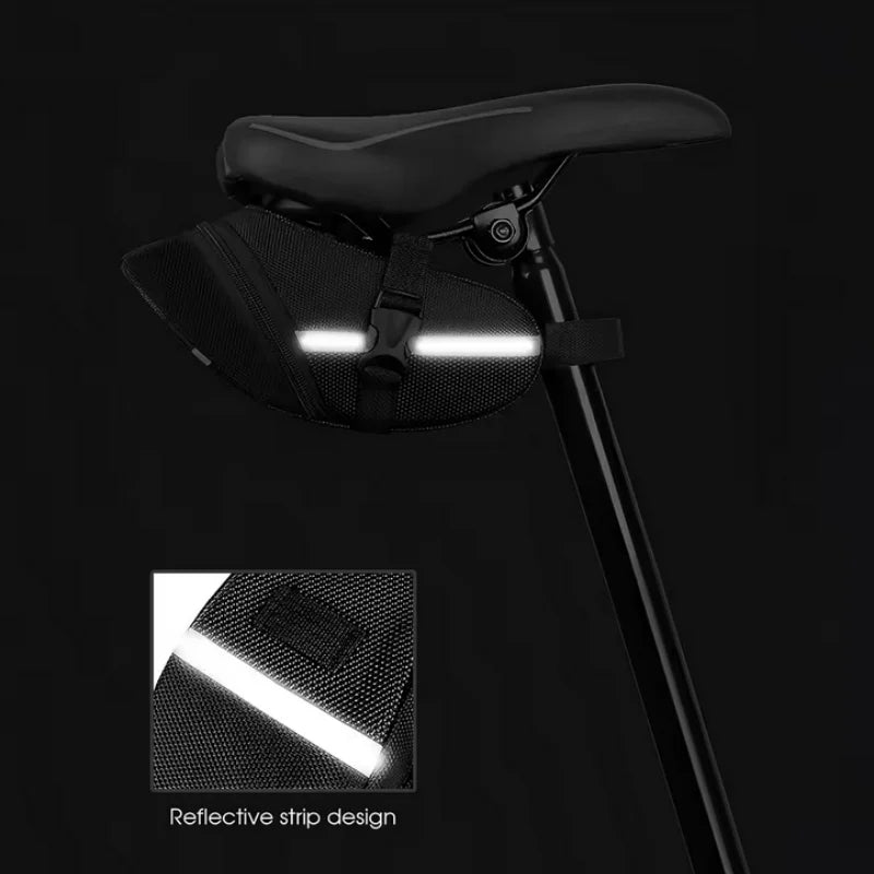Keep your essentials secure and organized with this compact bicycle saddle bag. Made from durable 600D fabric with easy-clean PU leather, it’s designed to withstand tough riding conditions while providing enough space for tire repair tools and small accessories. Reflective strips on all sides enhance visibility and safety, and the quick hook-and-loop strap ensures fast installation on most bike types. Perfect for both short and long-distance rides.