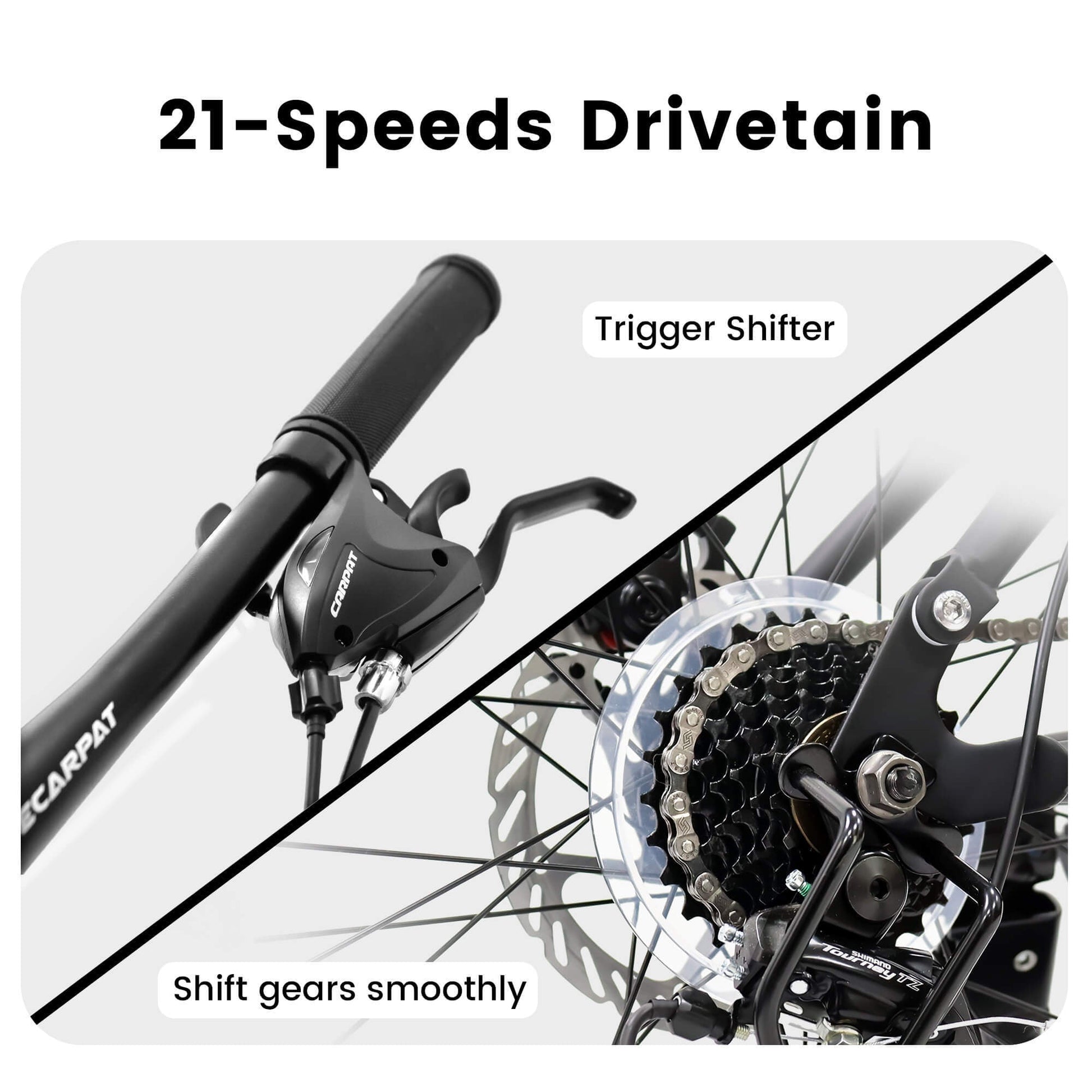 The FlexRide™ 24 delivers compact, versatile performance for both city streets and light trails. Equipped with 24" wheels, a 21-speed gear system, and front & rear disc brakes, it offers smooth shifting and confident stopping power in any weather. Its rugged metal frame, adjustable saddle, and ergonomic design ensure comfort for riders 4'9"–5'5". With 85% pre-assembly and a full toolkit included, it’s built for easy setup and everyday adventure.